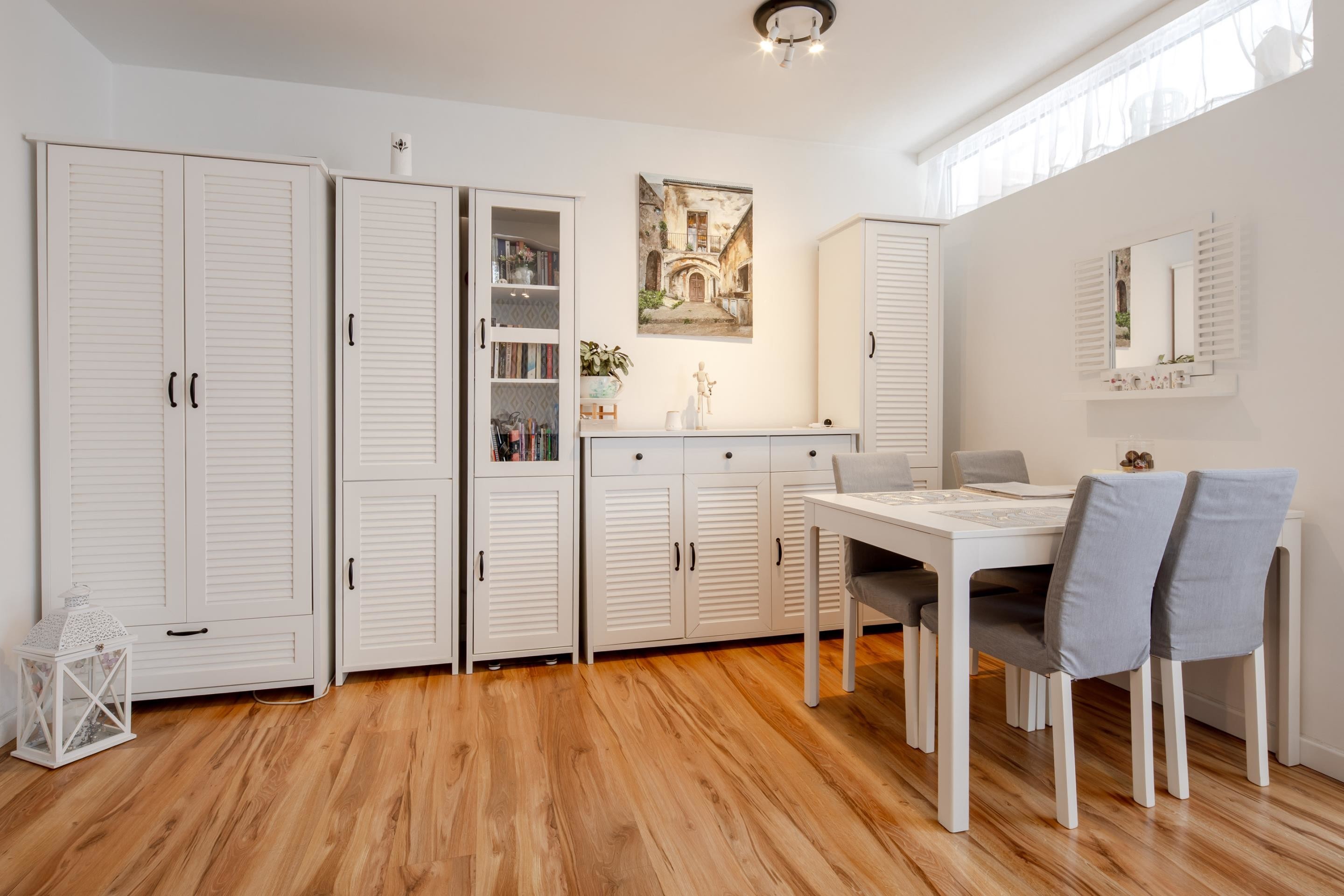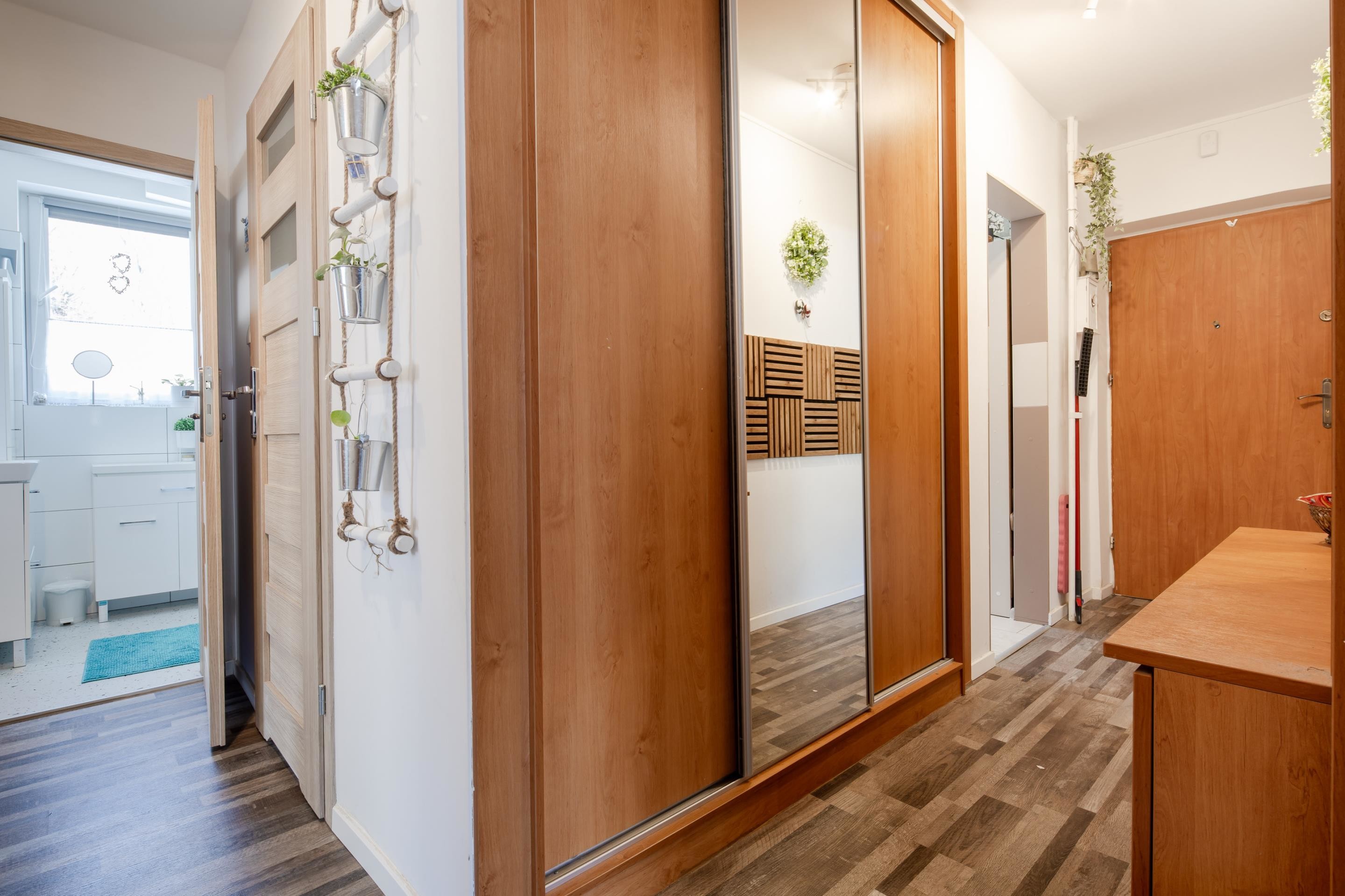 przestronny korytarz z dużą szafą w zabudowie