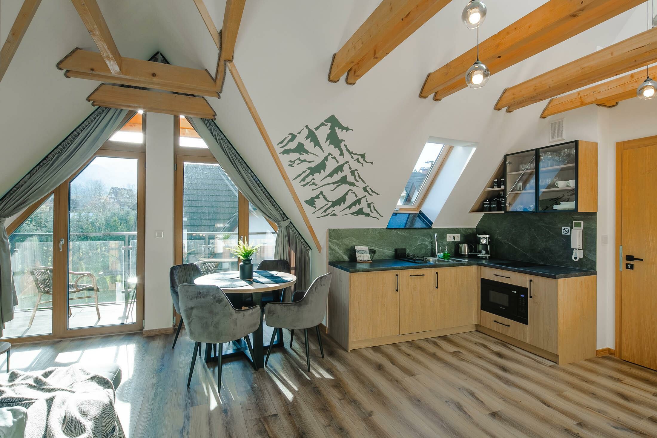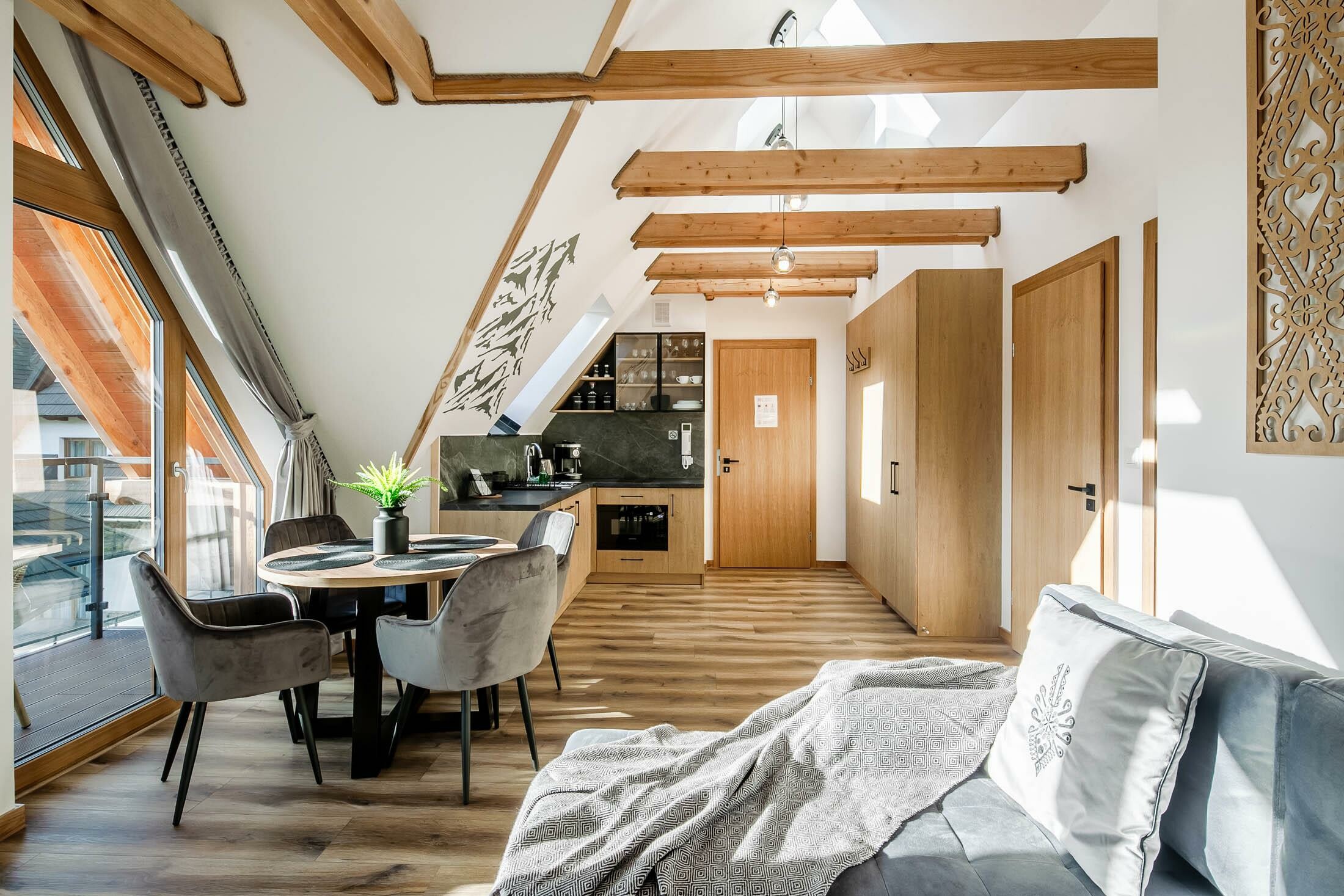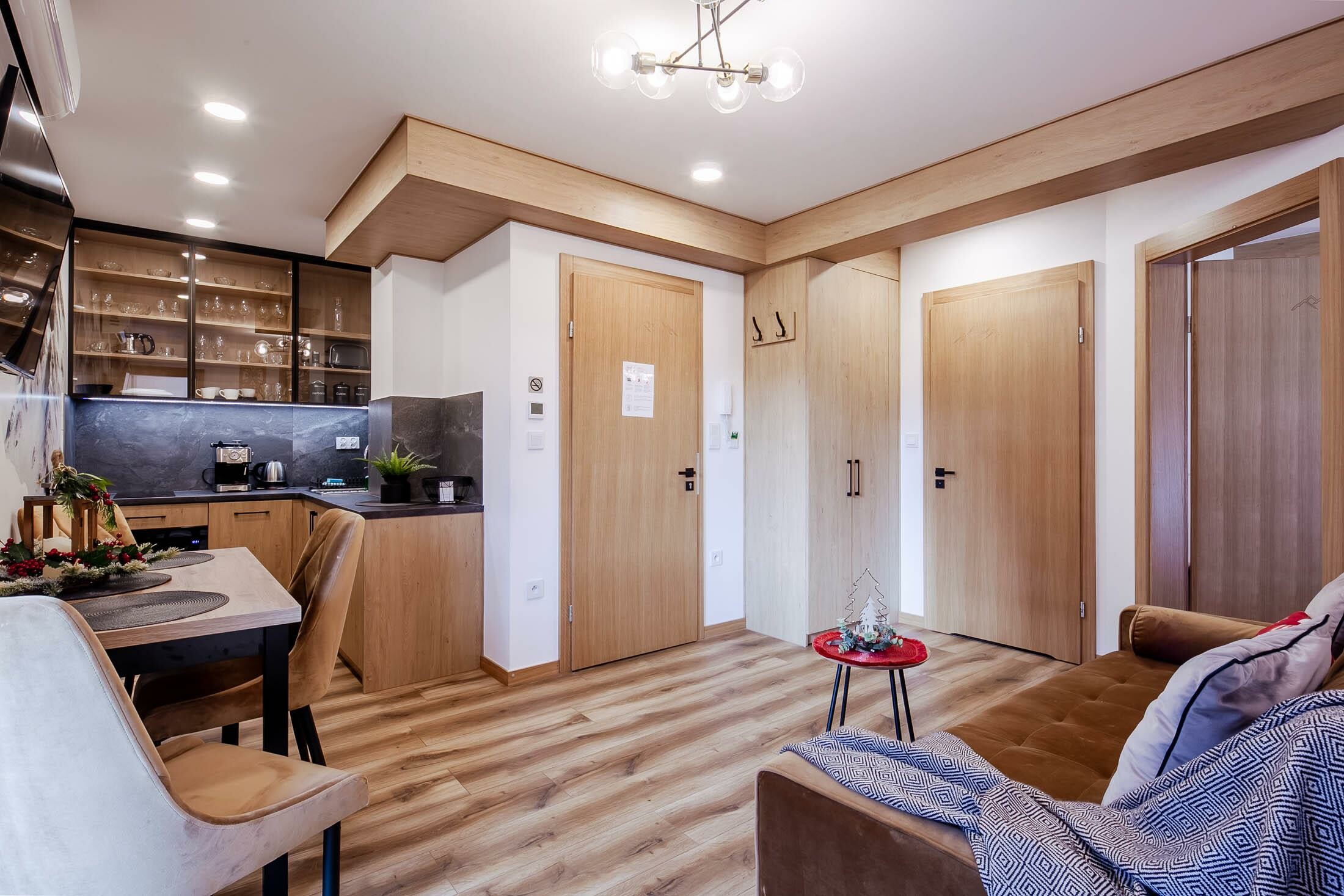 Segment mieści się w nowo powstałym kompleksie apartamentów na wynajem ze strefą SPA, grotą solną, parkingami i placem zabaw dla dzieci. Kompleks zlokalizowany jest w cichej, spokojnej i wyjątkowo widokowej dzielnicy Zakopanego - Oberconiówka. Z okien apartamentów rozpościera się przepiękny widok na Panoramę Tatr. Teren wokół jest kompleksu jest ogrodzony, a wjazd na posesję zamykany szlabanem na pilota. W budynku znajduje się narciarnia.
